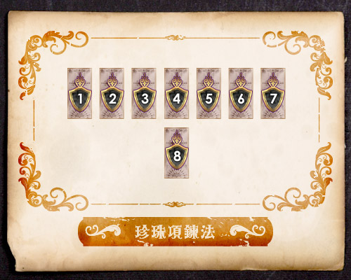 求問者「執行行動」前,採用珍珠項鏈法占卜最適合。可以從中知道問題的盲點,及處理這件事的最好辦法。