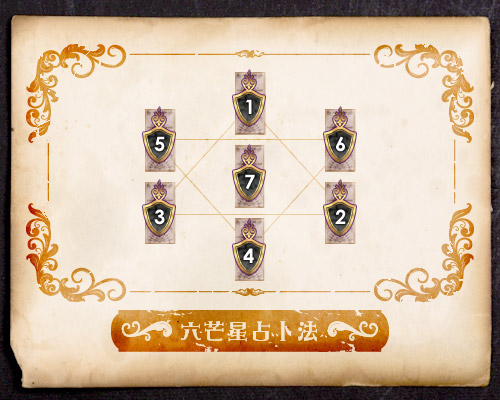 六芒星占卜法是塔羅牌中非常具有代表性的占卜法,它源自猶太教六芒星符號。如果你想知道問題發生的前因後果,及週遭環境對這件事的助益或阻礙之處,選擇這種占卜法最佳。