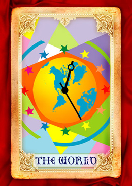 「世界」牌是自第一張的開始,經過各式各樣的狀況而表現出來靈魂昇華的最高境界,就像瑜伽術中「無我」的境地,也可以解釋為肉體的解脫與精神的昇華,而達到與宇宙萬物合為一體的狀態。