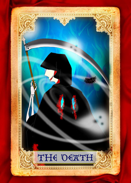 黑色披風包裹著的骸骨,露出冷酷的微笑,揮舞著鋒利雪亮的長柄鐮刀,似乎要毀滅終止一切。骸骨象徵著最後的破壞,意味著要毀滅一切生命力與創造力,所以這張牌所表示的含義是要能立刻當機立斷,迅速地下決心,在終止與重生之間做一個明確的抉擇。